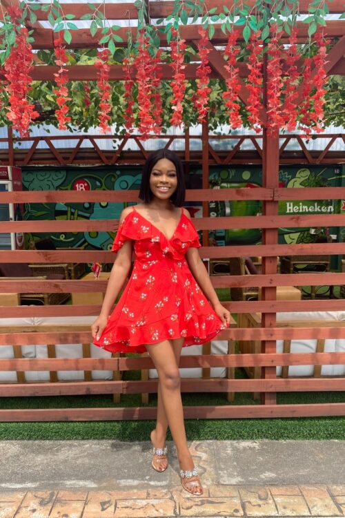 RED FLORAL WRAP DRESS