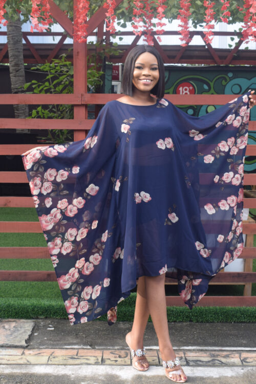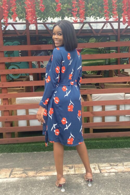 NAVY FLORAL SURPLICE LONG SLEEVES DRESS