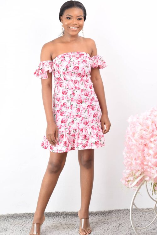 PINK FLORAL OFF-SHOULDER DRESS