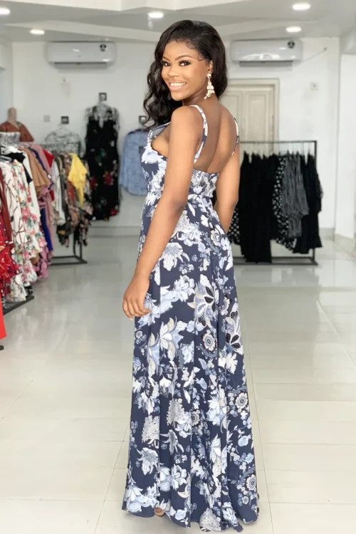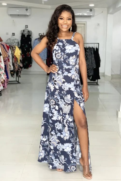 BLUE MAXI BEACH FLORAL CAMI DRESS