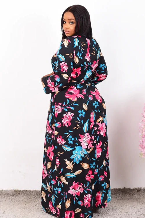 BLACK FLORAL MAXI WRAP DRESS