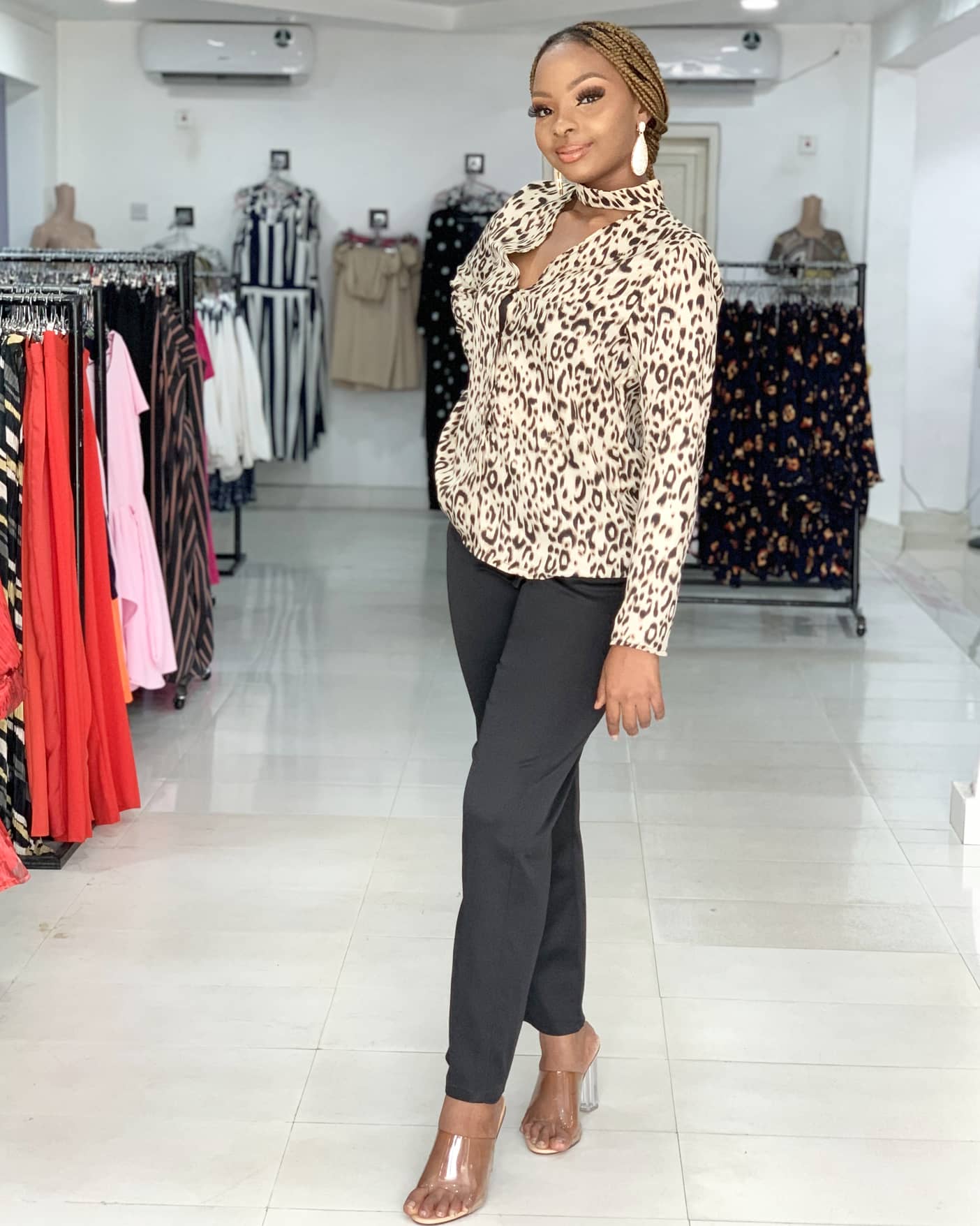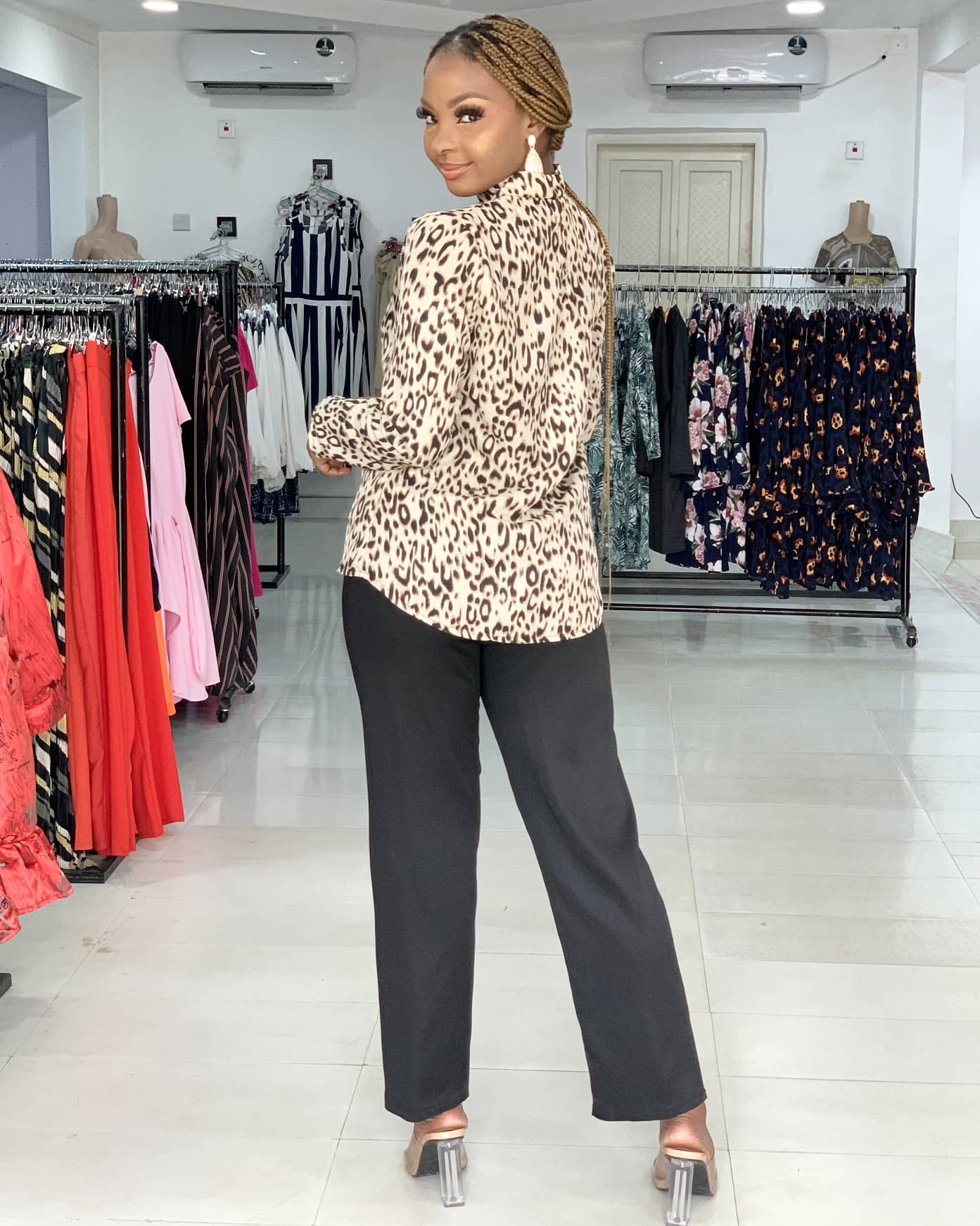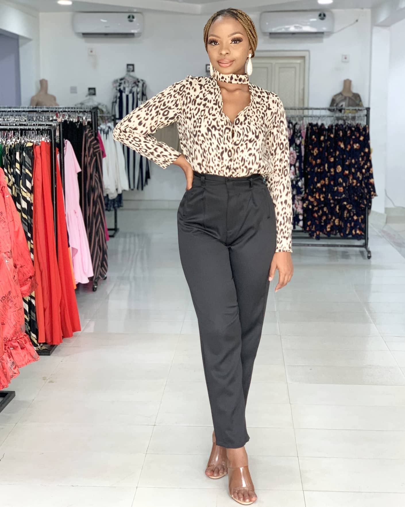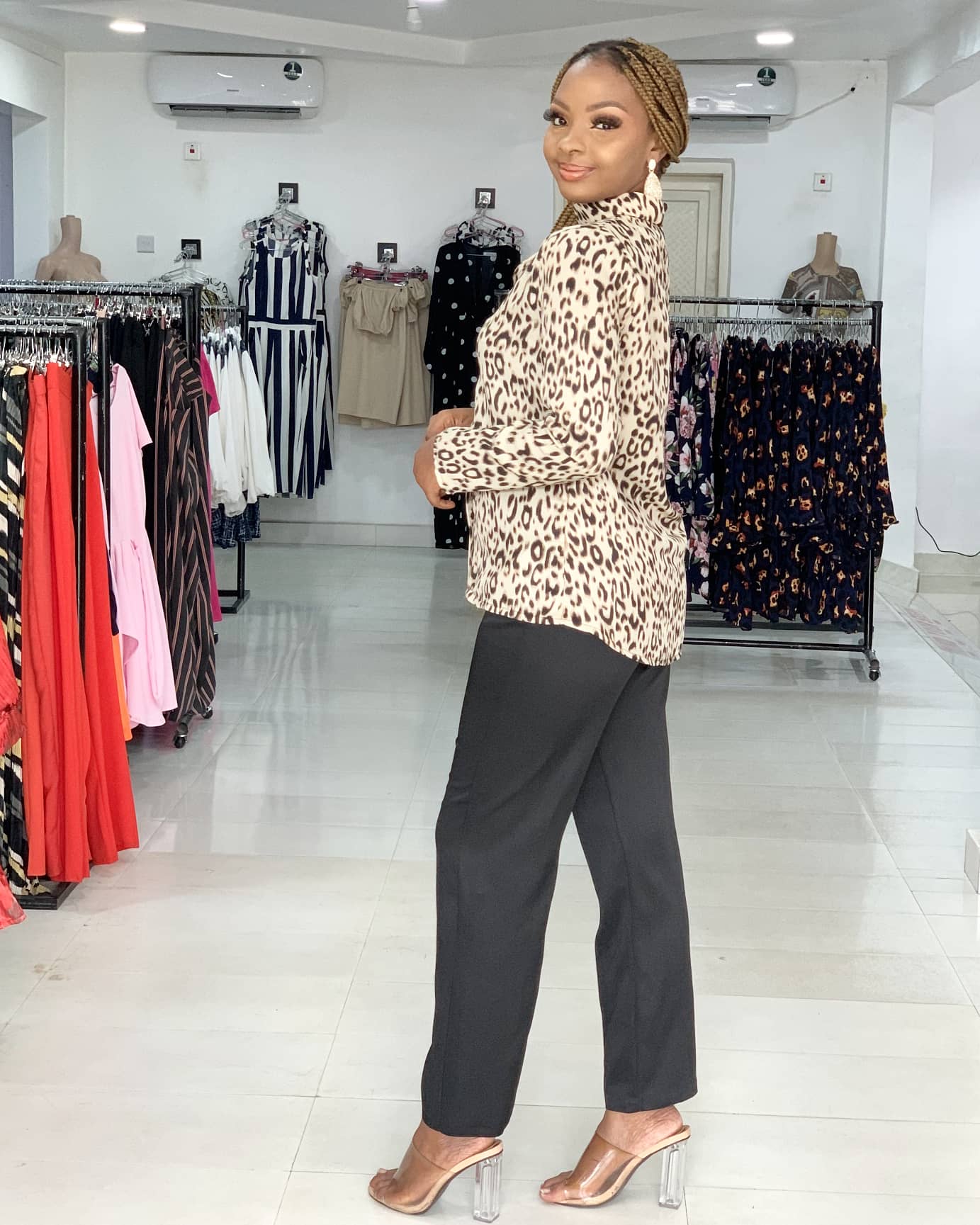 LEOPARD PRINT TURTLE NECK BLOUSE