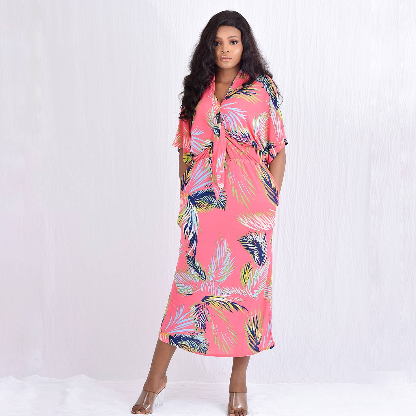 PINK FLORAL TIE FRONT MIDI DRESS quantity